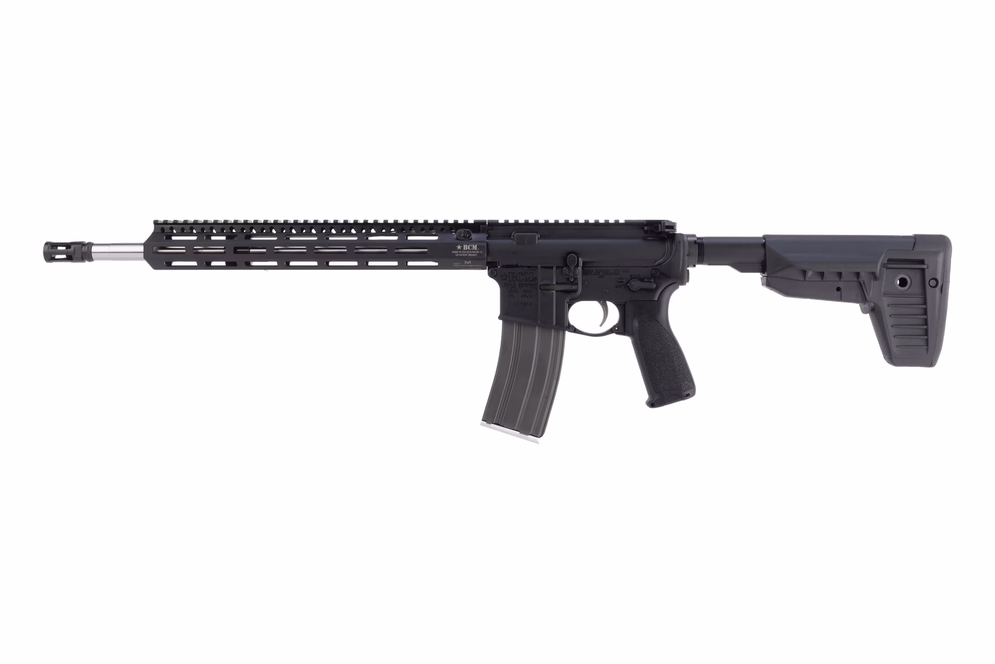 This Bravo Company Manufacturing 16″ 5.56 NATO RECCE-16 Precision Rifle is built around a 410 stainless steel barrel with a medium contour and a mid-Length gas system for the ultimate combination of accuracy, reliability, and low recoil. Adding to the low felt recoil is the use of a USGI H buffer weight and properly sized gas port. The RECCE-16 Precision rifle comes with all the features you expect like BCM furniture and the 13.5” MCMR free float M-LOK handguard. The bolt carrier group is built to last with chrome lined internals, Carpenter 158 bolt face, magnetic particle inspected, high pressure tested, and a properly staked gas key. The BCM RECCE-16 Precision AR-15 Rifle is built for accuracy and is sure to be the favorite in your collection.