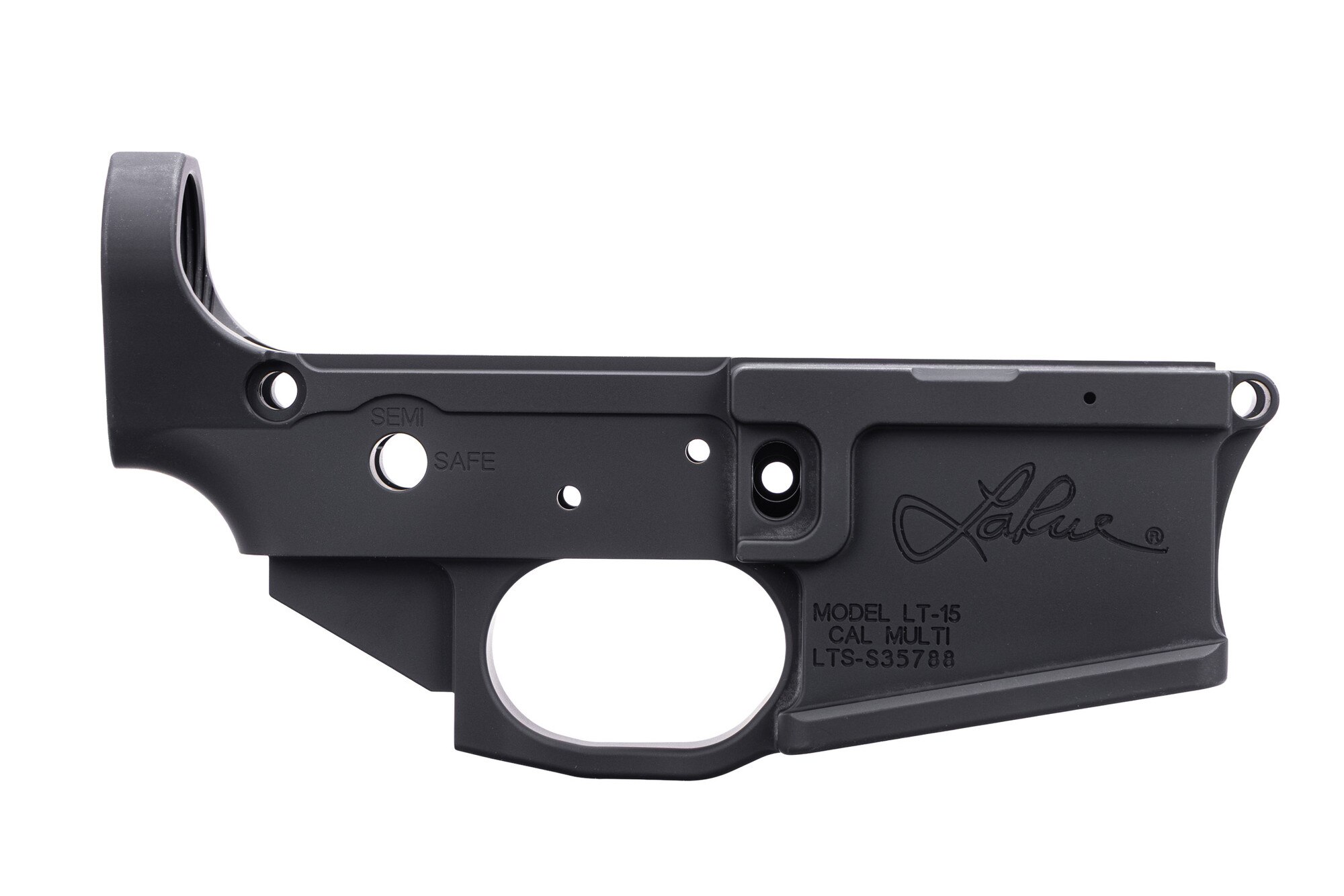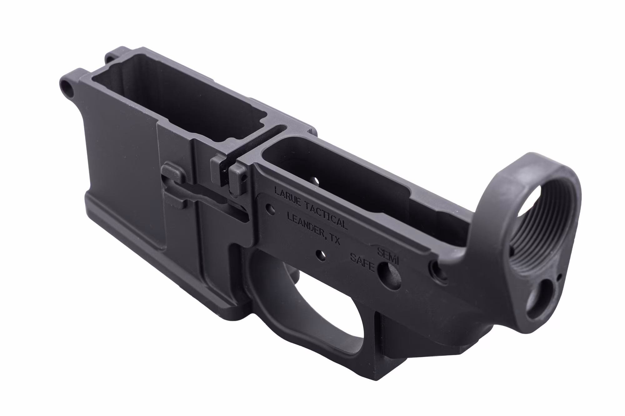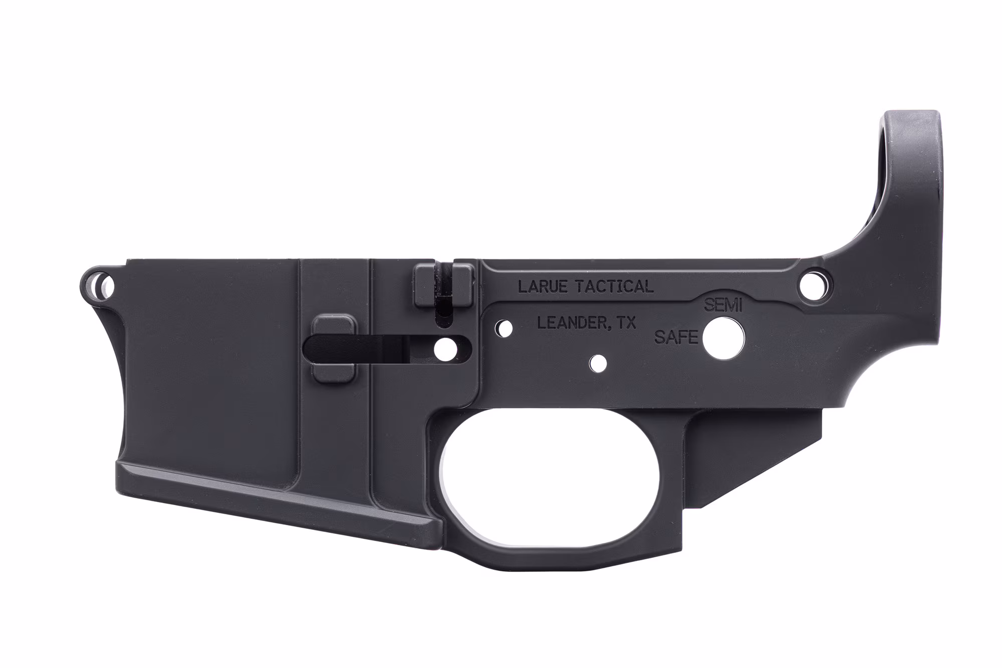 The LaRue Tactical AR-15 Lower Receiver is a solid choice for your next custom AR-15 build. Precision CNC-machined from 7075 aluminum, it’s reinforced in vital areas for enhanced strength. The flared magwell ensures quick magazine swaps, while the oversized trigger guard is designed for easy use with gloves. With a tough type-III hard coat anodized finish and a reinforced buffer tube section, this lower is built for durability and reliability.